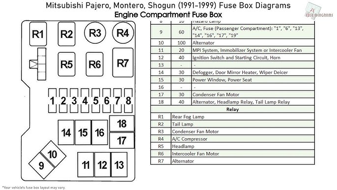 Fuse Box Diagram Mitsubishi Pajero Ii V20 1991 1999