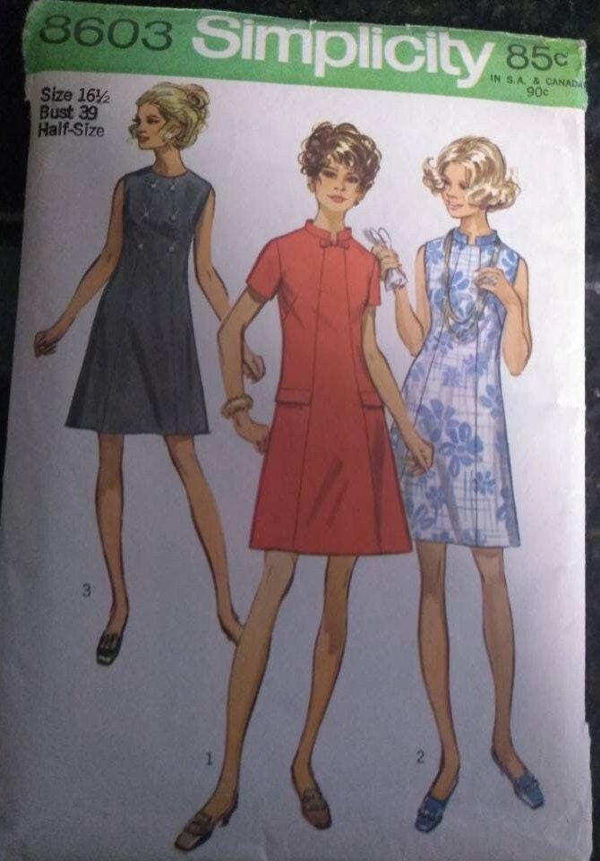 Vintage Simplicity Dress Pattern 8603 Size 16 1 2 Bust 39 Etsy